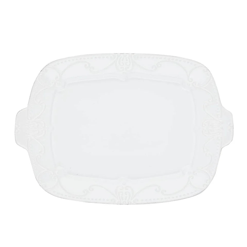 The Isabella Rectangular Tray is the perfect size for a turkey or sliced beef tenderloin. It will become your entertaining must have for cheese and crackers, grilled shrimp or barbequed chicken. Perhaps you might even need several of these. Handcrafted in Portugal of ceramic stoneware. Freezer, oven, microwave and dishwasher safe.