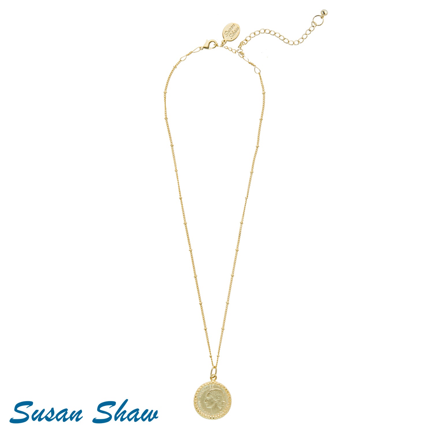 Susan Shaw 16" Gold Chain Necklace with Gold French Coin 3522CR