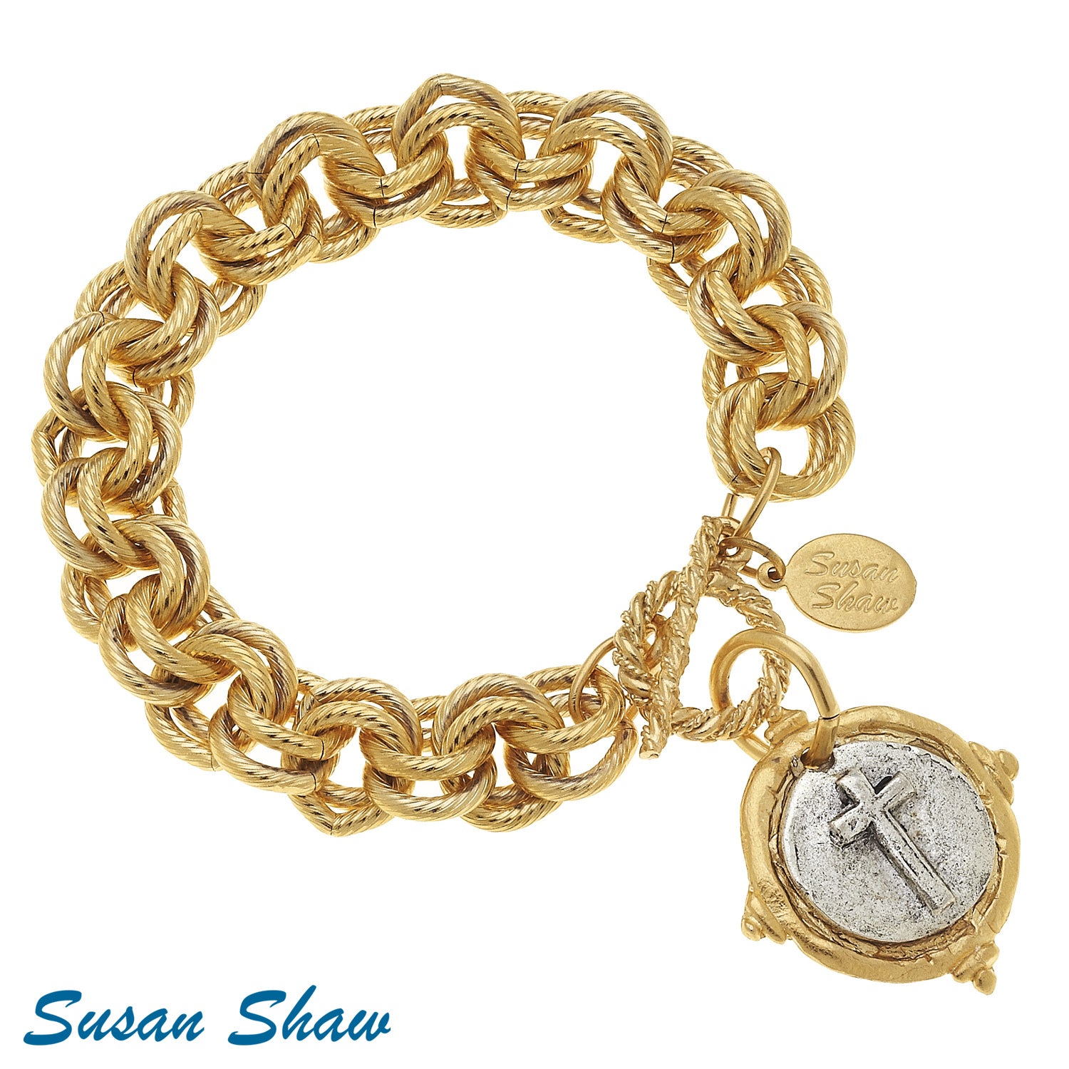 Susan Shaw Handcast Gold and Silver Cross Intaglio Bracelet 2530C