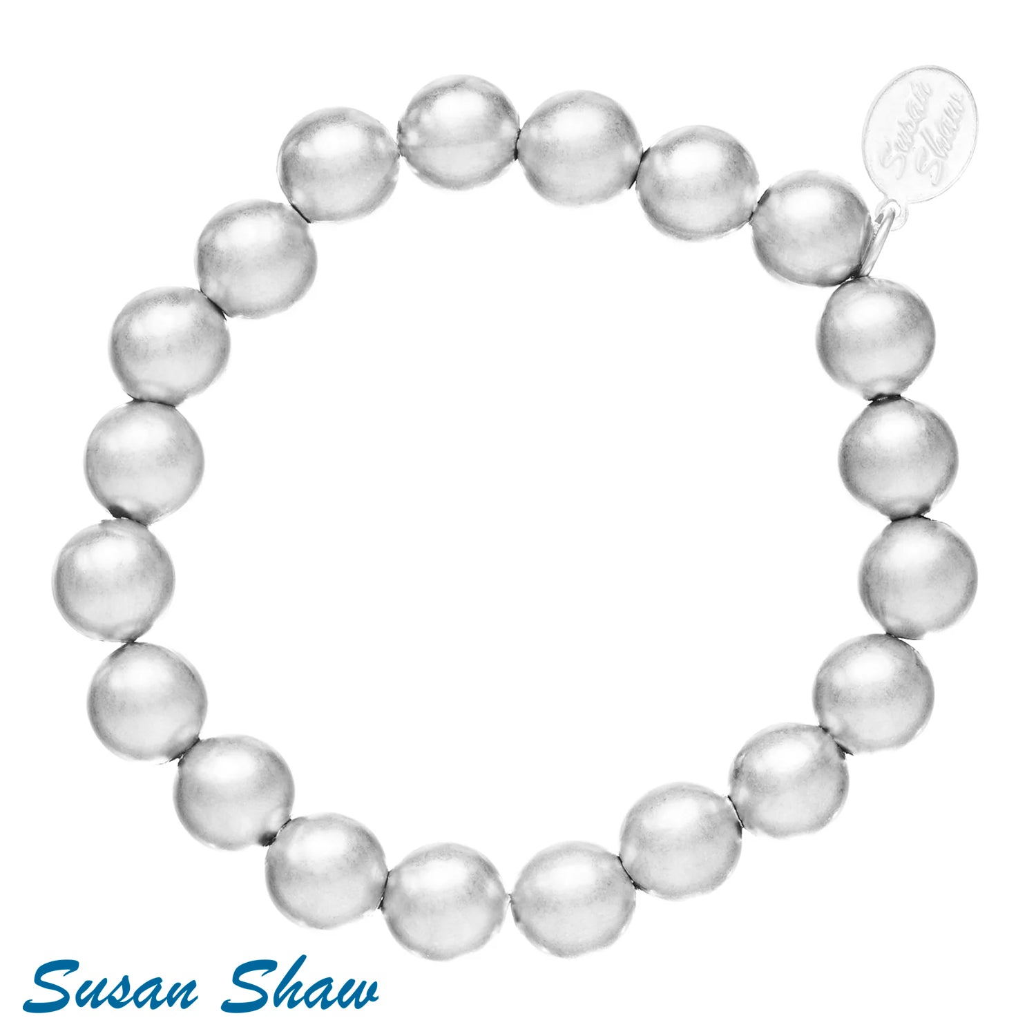 Susan Shaw Silver 10mm Beaded Stretch Bracelet 2420S