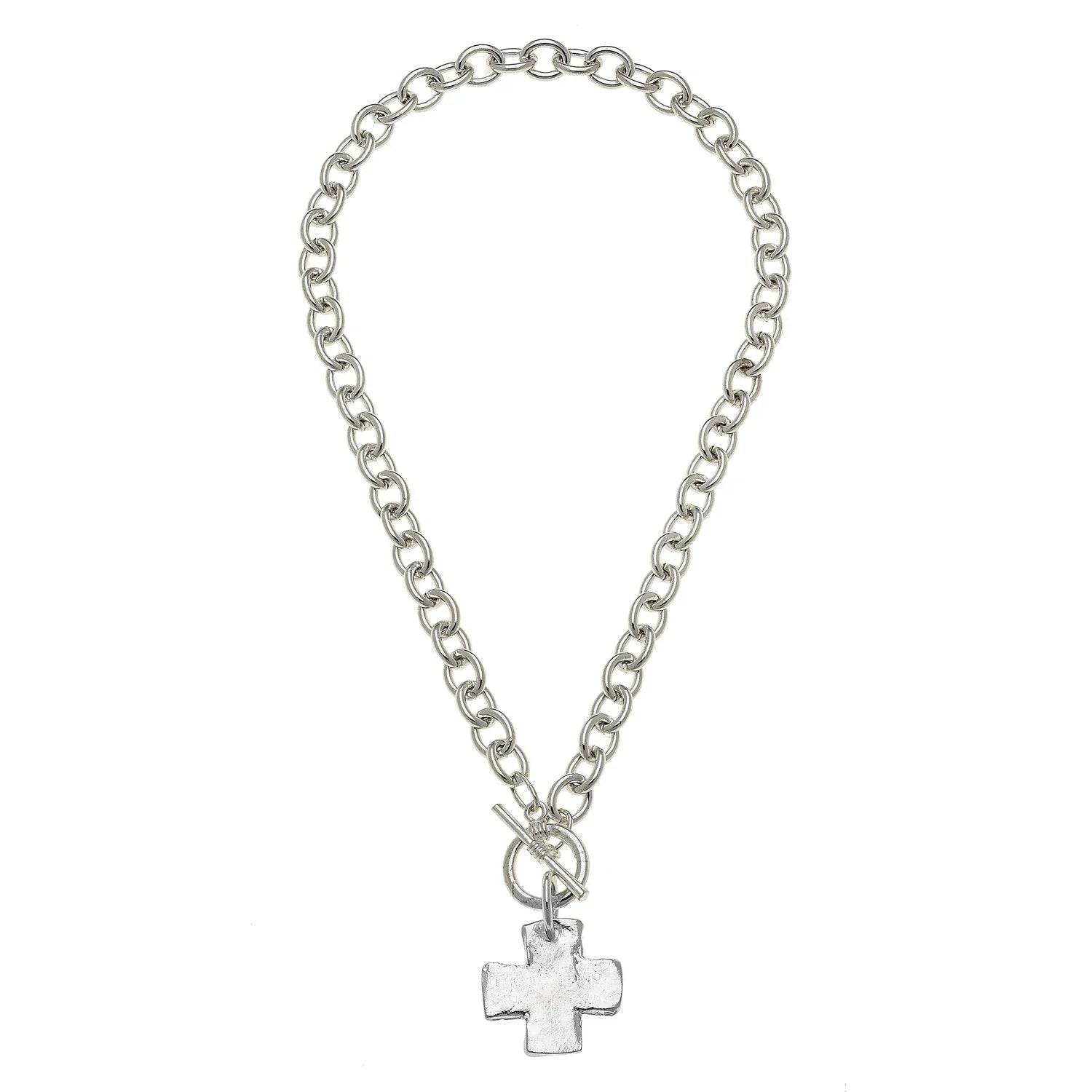 Susan's hand cast square cross pendant is an all-time favorite. Paired with our bestselling necklace style with toggle detail, this design is classic.
