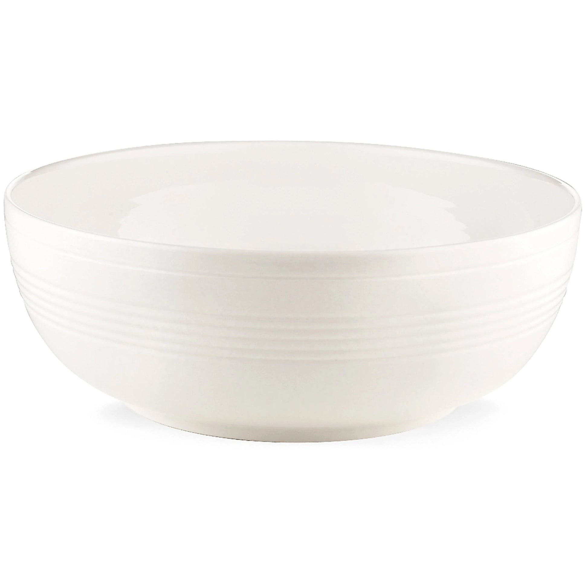 The Tin Can Alley Large Serving Bowl adopts the tin can's emblematic corrugated rings on durable white porcelain for a simple, aesthetic design. This dishwasher and microwave-safe bowl suits any occasion and complements a variety of dinnerware styles.