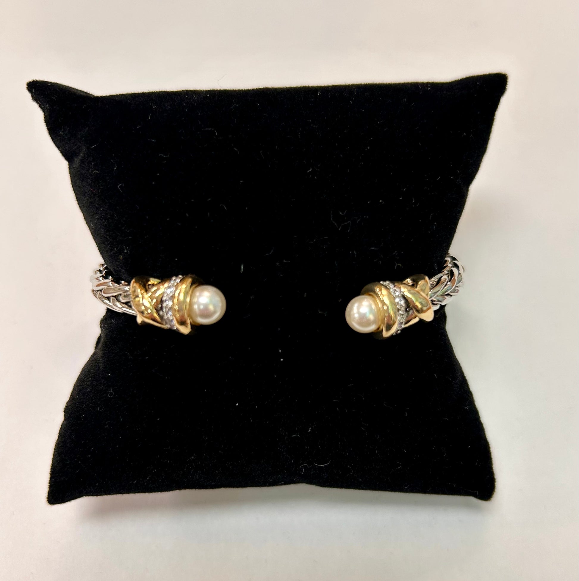 Two-tone Rhodium Braided Bracelet with Pearl Accents