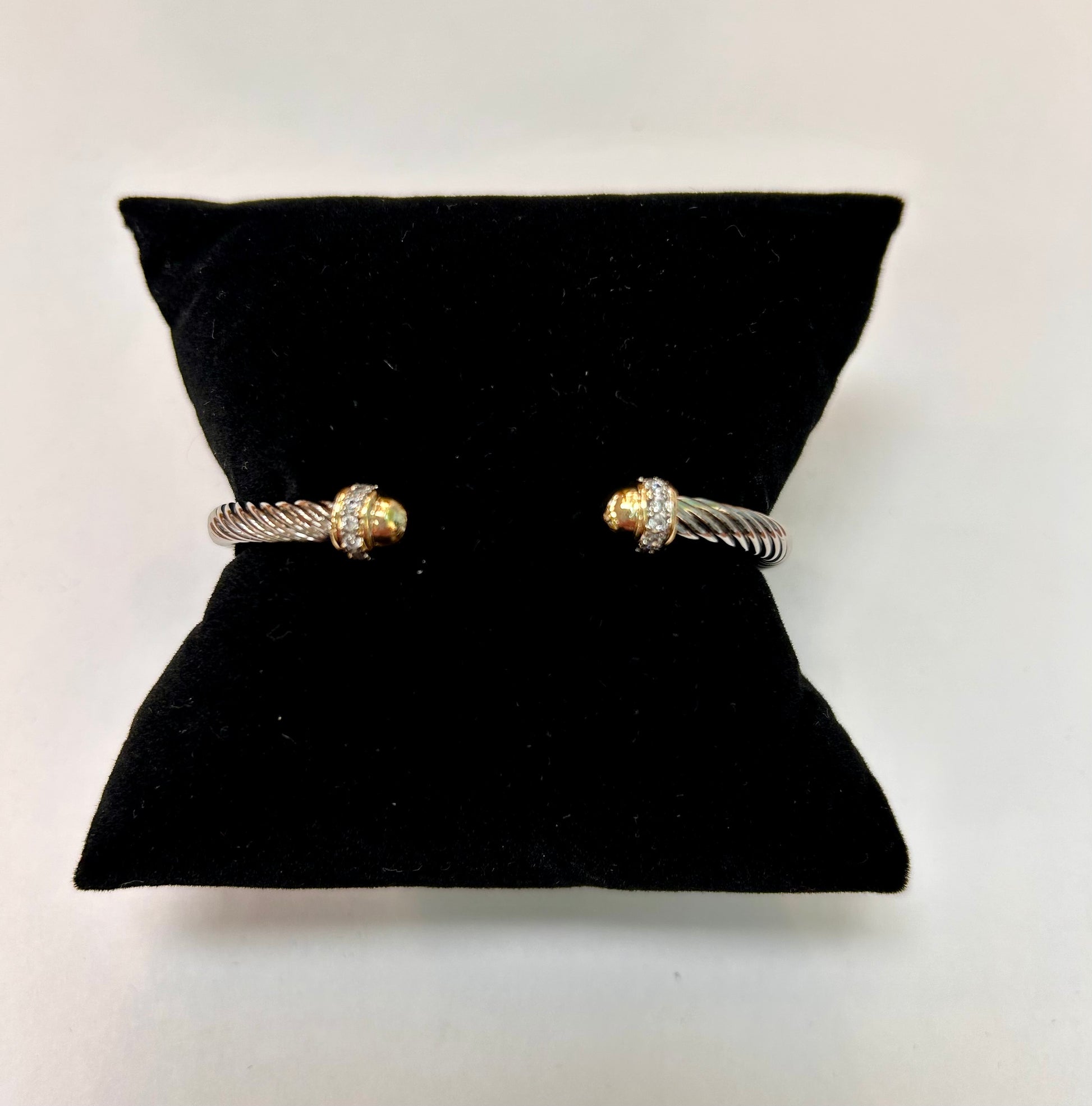 Two-tone Rhodium Braided Bracelet with Rhinestone Accents