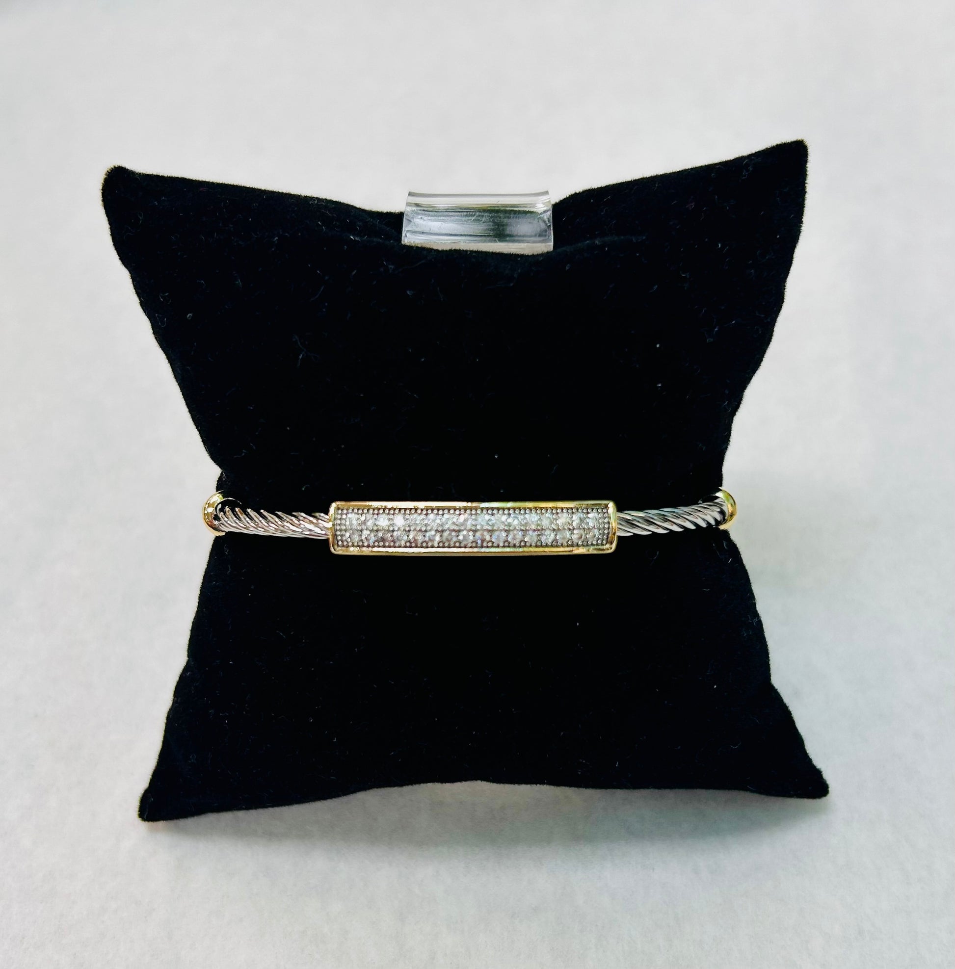 Two-tone Rhodium Corded Magnetic Bracelet with Rhinestones