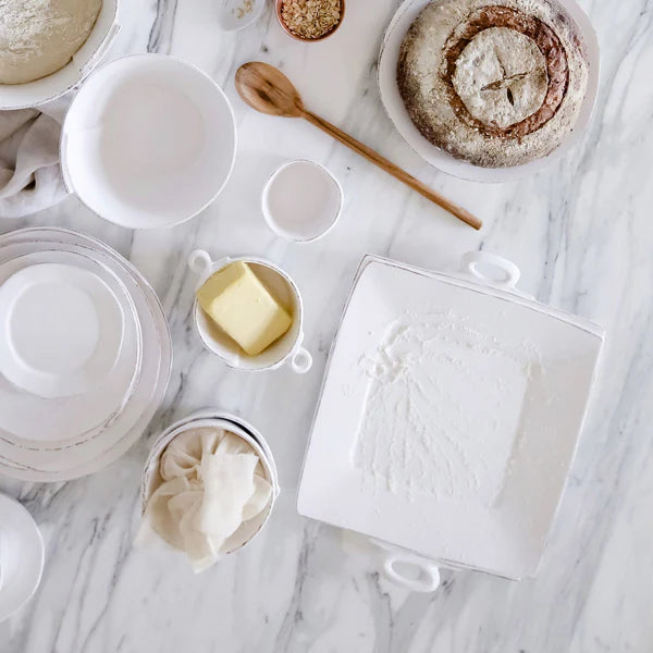 The rustic yet chic shape of the Lastra Handled Square Platter looks clean and sophisticated on your table. An overlapping wooden mold, used for centuries to form cheeses throughout Italy, inspired this collection.