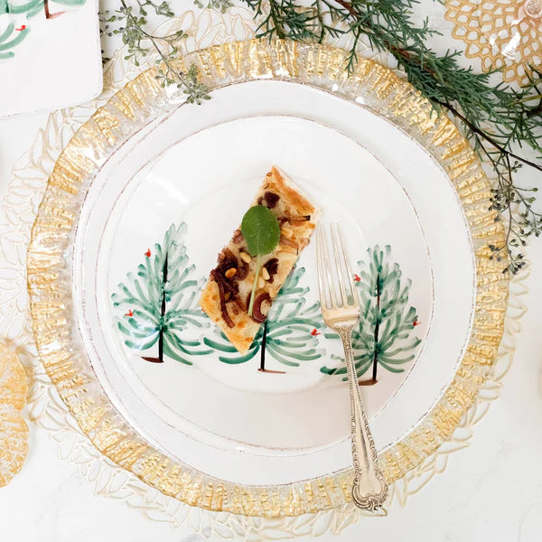 With glowing strands and beautiful texture, the Rufolo Glass Service Plate/Charger brings luster, glamour, and irresistibly Italian style to your table.