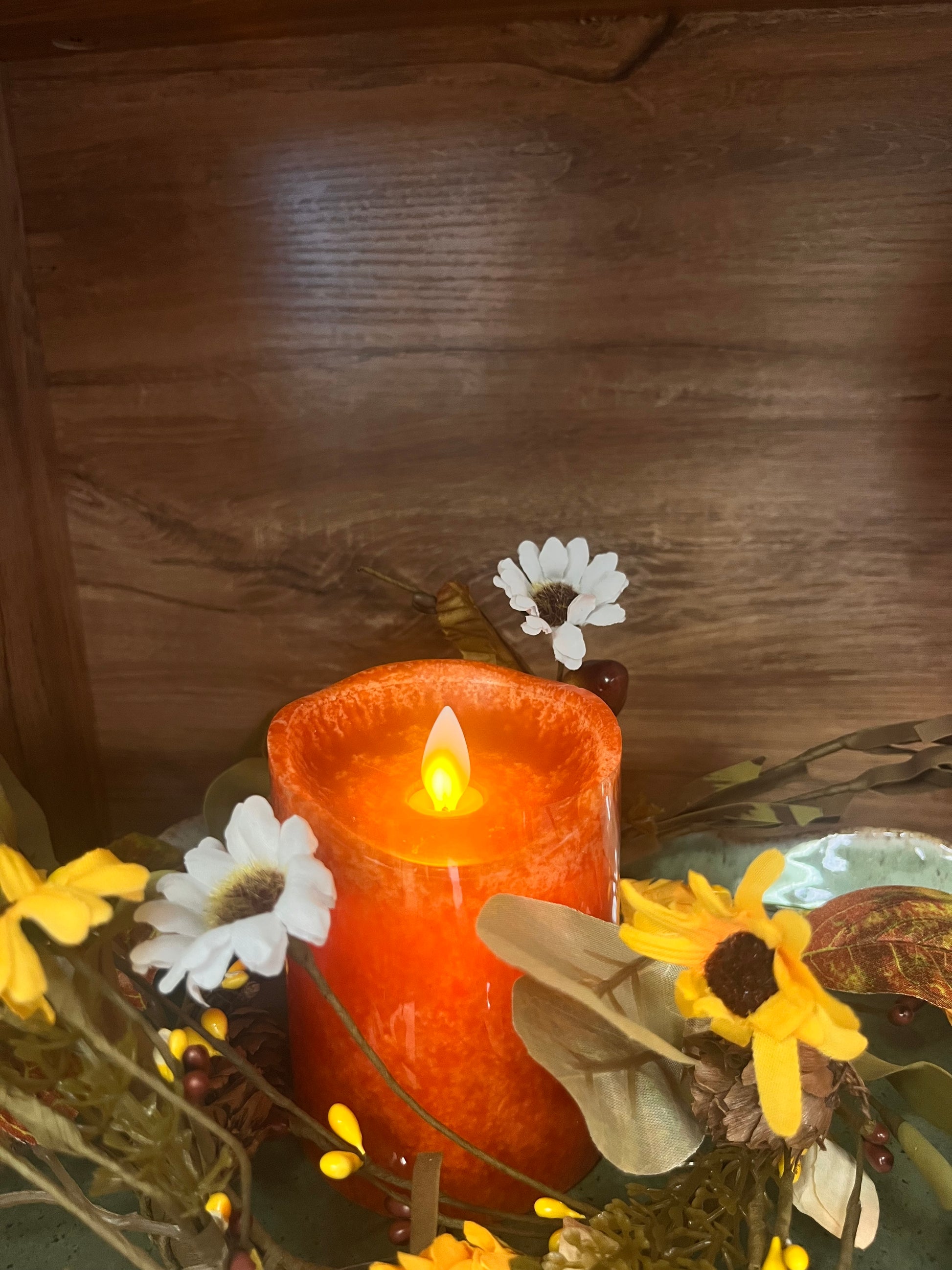 Orange Mottle Moving Flame Led Candle 3in By 4in
