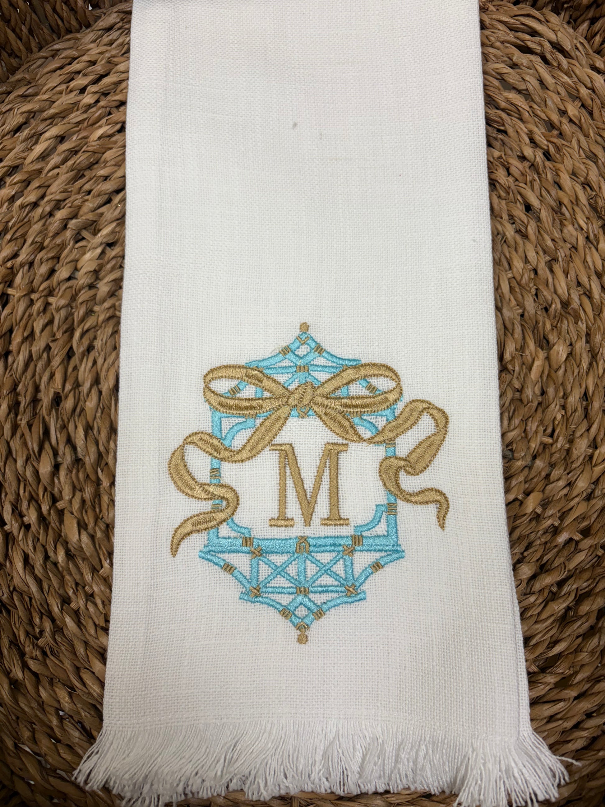 White Fringe Bamboo Cage w/ bow and Initial
