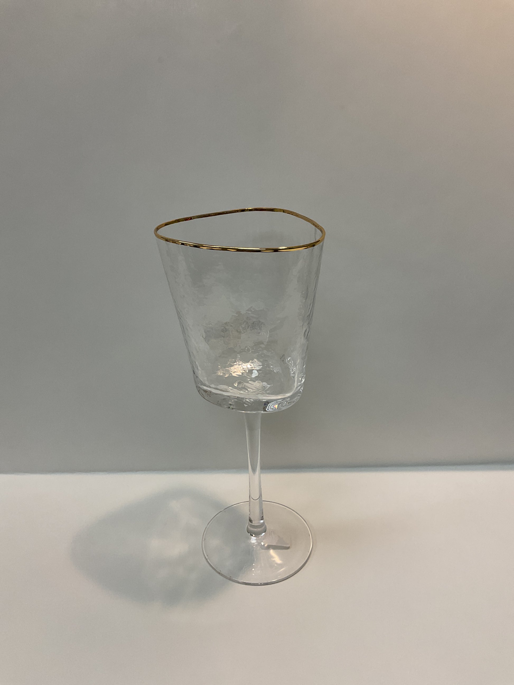 Zodax Triangle Wine Glass with Stem and Gold Edge